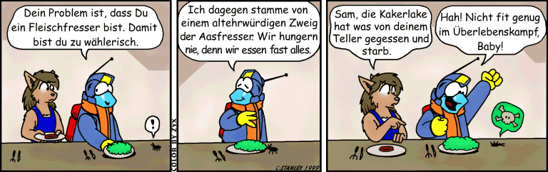 Original FREEFALL gezeichnet von © Mark Stanley, Farbe von Michael Menne, deutsche Übersetzung © Markus Pristovsek.