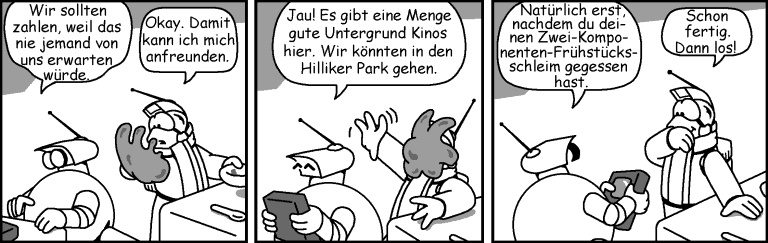 Original FREEFALL gezeichnet von © Mark Stanley, Farbe von Michael Menne, deutsche Übersetzung © Markus Pristovsek ab Strip 325 © Michael Lorenz und © Bernhard Lindner.