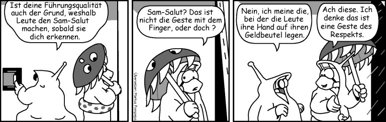 Original FREEFALL gezeichnet von © Mark Stanley, Farbe von Michael Menne, deutsche Übersetzung © Markus Pristovsek, ab Strip 325 © Michael Lorenz und © Bernhard Lindner, ab Strip 445 © Markus Pompejus. Grafische Bearbeitung: © Susanne Simon.