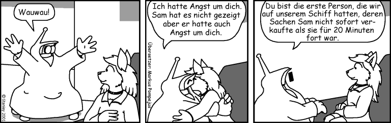 Original FREEFALL gezeichnet von © Mark Stanley, Farbe von Michael Menne, deutsche Übersetzung © Markus Pristovsek, ab Strip 325 © Michael Lorenz und © Bernhard Lindner, ab Strip 445 © Markus Pompejus. Grafische Bearbeitung: © Susanne Simon.