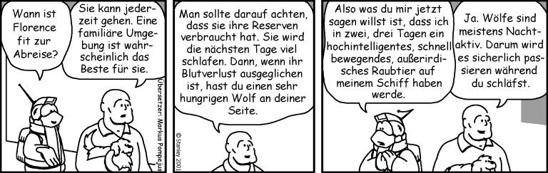 Original FREEFALL gezeichnet von © Mark Stanley, Farbe von Michael Menne, deutsche Übersetzung © Markus Pristovsek, ab Strip 325 © Michael Lorenz und © Bernhard Lindner, ab Strip 445 © Markus Pompejus. Grafische Bearbeitung: © Susanne Simon.