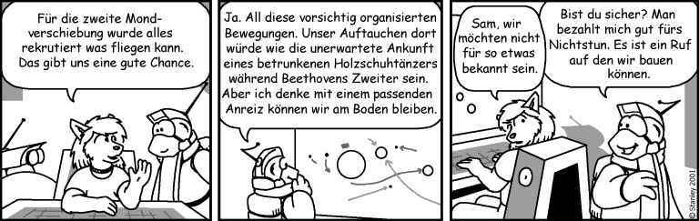 Original FREEFALL gezeichnet von © Mark Stanley, Farbe von Michael Menne, deutsche Übersetzung © Markus Pristovsek, ab Strip 325 © Michael Lorenz und © Bernhard Lindner, ab Strip 445 © Markus Pompejus. Grafische Bearbeitung: © Susanne Simon.