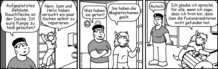 Original FREEFALL gezeichnet von © Mark Stanley, Farbe von © Michael Menne, deutsche Übersetzung © Markus Pristovsek, ab Strip 325 © Michael Lorenz und © Bernhard Lindner, ab Strip 445 © Markus Pompejus. Grafische Bearbeitung: © Susanne Simon. Ab Strip 539 © Sebastian Vogt.