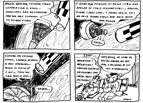 So, behind my back, they all arranged to do a whole page of them for that week's issue. Apparently, everybody on the staff but me knew about it; I did get a bit suspicious when nobody would let me look in the comics submission box. Still, it was a great surprise to open the paper that week and discover everyone's efforts. I think these styles are about as diverse as it gets.