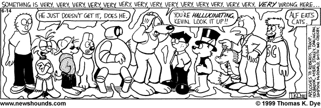 A "Newshounds" strip in which Ozy made a cameo in Kevin's hallucination. So did a bunch of characters from other places.