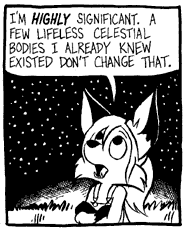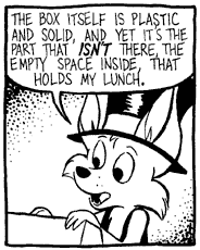 Ozy Sein voller Name ist Ozymandias J. Llewellyn. Er ist ein kleiner grauer Polarfuchsjunge und ist ungefähr 10 Jahre alt. Er hat für ein Kind in seinem Alter eine sehr ungewöhnliche philosophische Betrachtungsweise seiner Umgebung; manchmal scheint er nicht von dieser Welt zu sein. Er ist fast immer eine sehr gelassen Persönlichkeit, auch dann wenn eine Portion Zynismus eher sinnvoll wäre. Dies führt des öfteren zu, teilweise sehr unangenehmen, Konsequenzen. Trotz alledem ist er der Vorzeigecharakter für Zen, zumindestens in diesem Comic. |