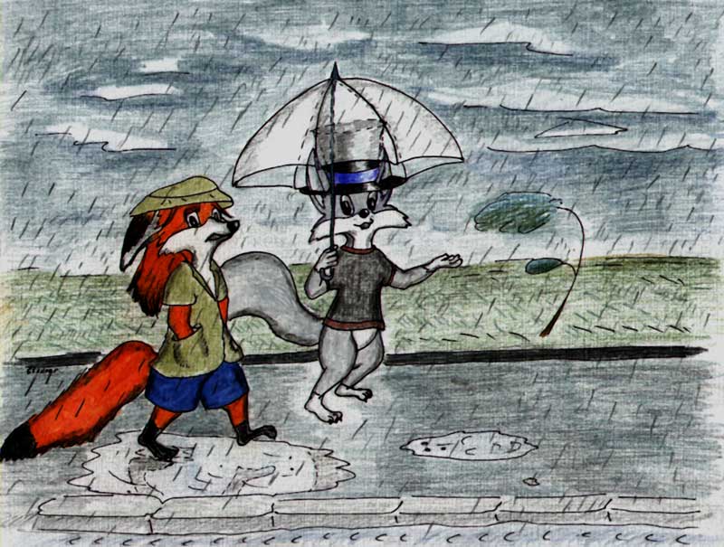Под дождем...