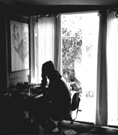 The room is bright and sunny and Kate is sitting at a desk by the window.