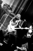 A band is playing in the next room and people are shouting to be heard over the swirling guitar.