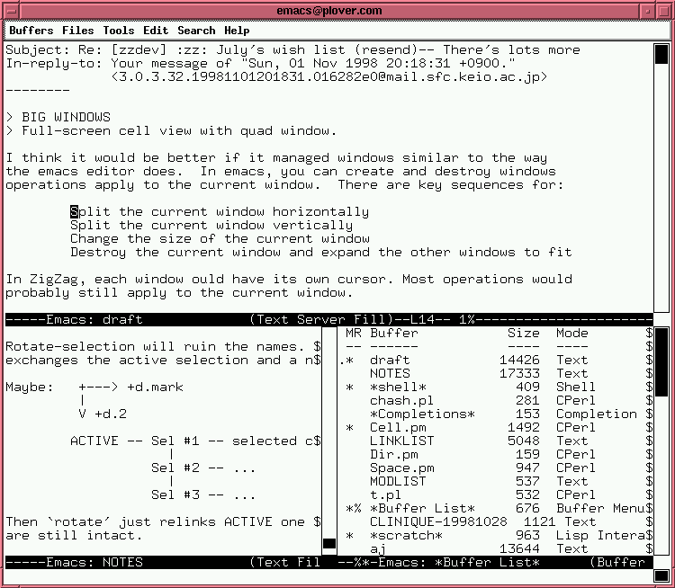Attached is a picture of a typical emacs session.